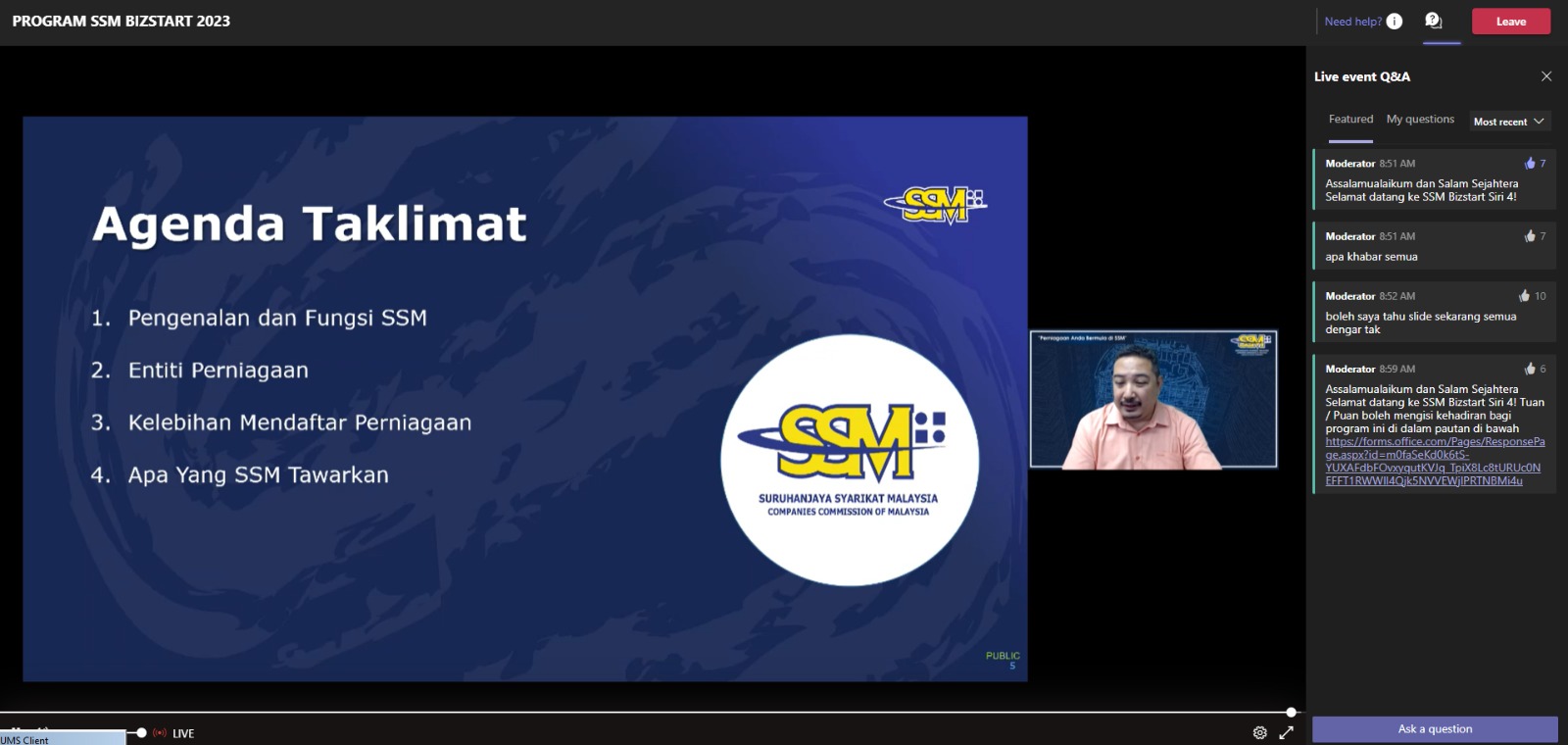 KELAS KEUSAHAWANAN – SSM BizStart bersama Usahawan PEDi