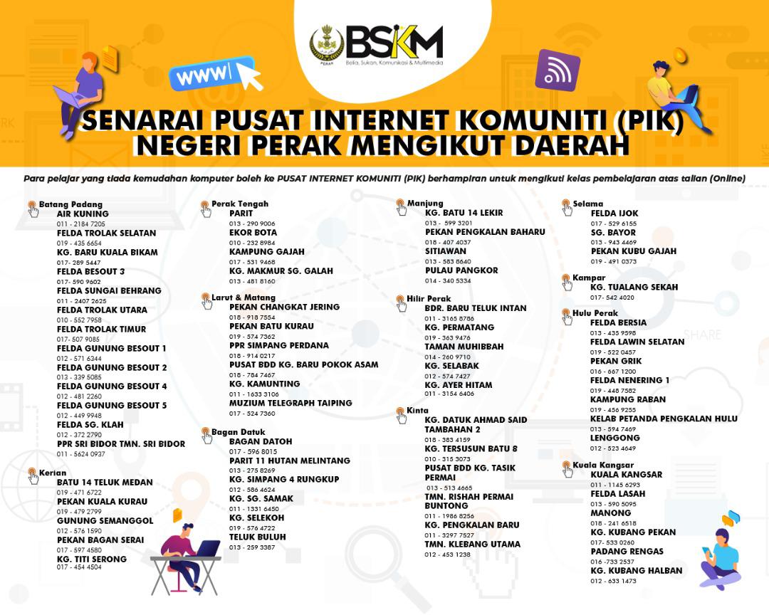 “Perak mempunyai keseluruhan 66 buah Pusat Internet Komuniti dan kesemua Pusat Internet Komuniti ini beroperasi dari jam 9 pagi hingga 6 petang.